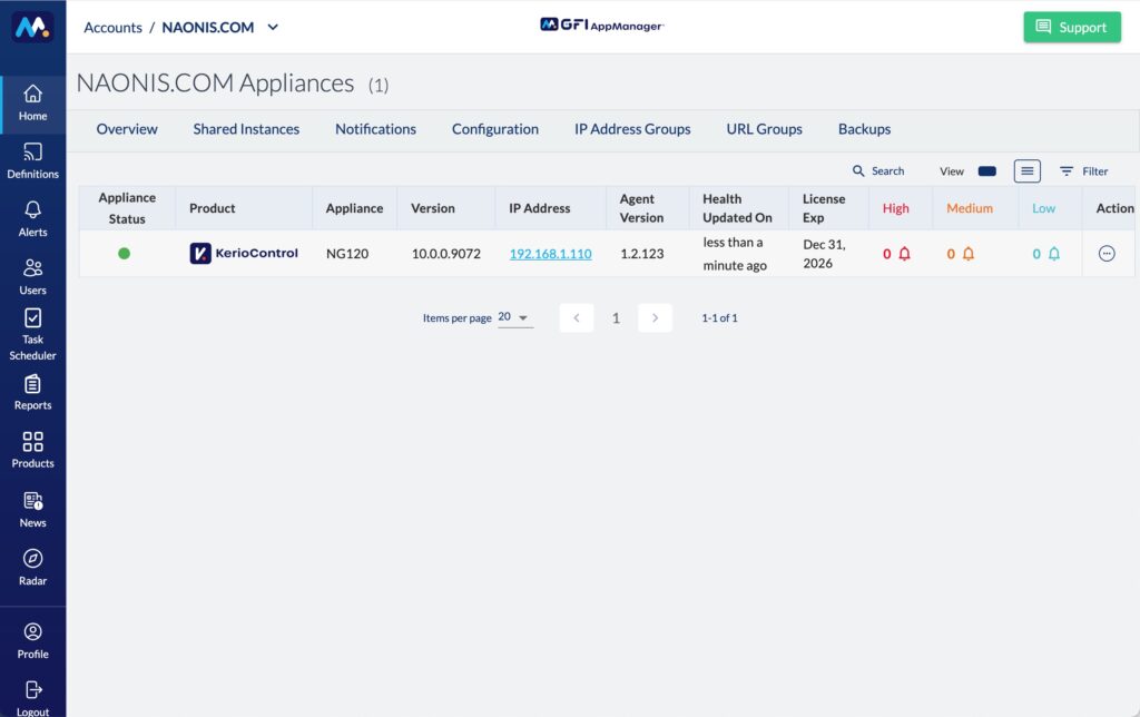 Ecco l’NG120 registrato e connesso a GFI AppManager: