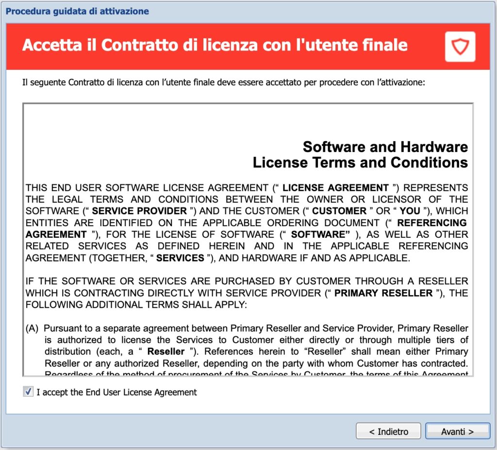 Accettiamo l’Itailiano e il contratto di licenza: