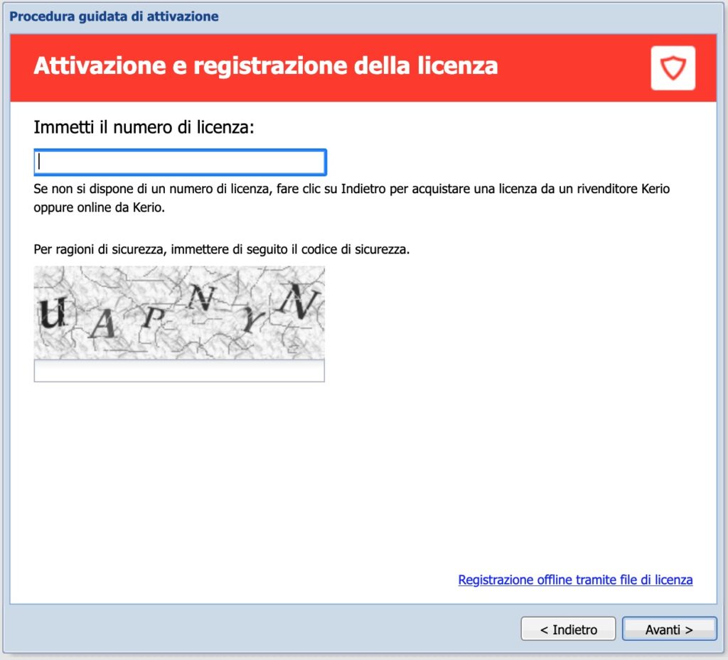 Inseriamo la chiave di licenza e il captcha: